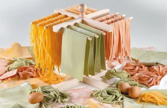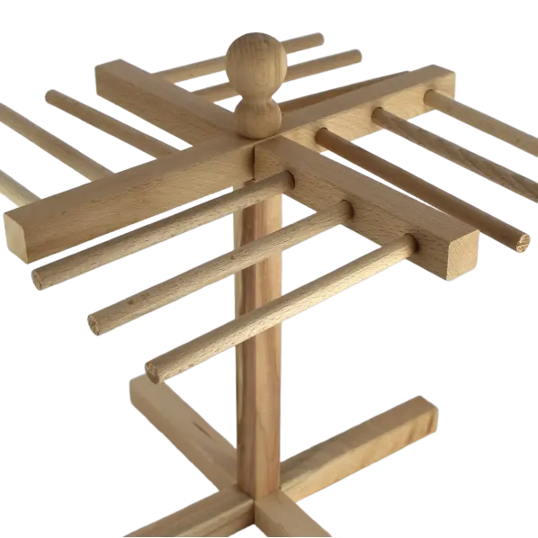 Optimisez le séchage de vos créations maison avec le séchoir à pâtes Brodiez. Fabriqué en bois de hêtre robuste, il est équipé de 4 bras permettant de suspendre et sécher jusqu’à 1 kg de pâtes fraîches (tagliatelles, fettuccines, linguines) de manière homogène. Sa conception verticale gain de place est idéale pour toutes les cuisines. Dimensions : Hauteur 34 cm x Diamètre 30 cm.